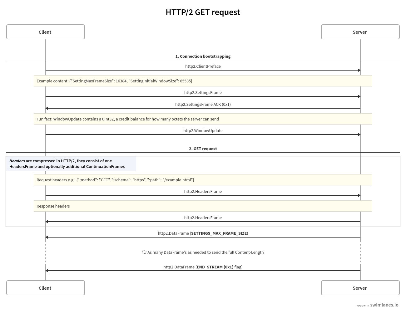 Let’s look at a HTTP/2 GET request in a sequence diagram: